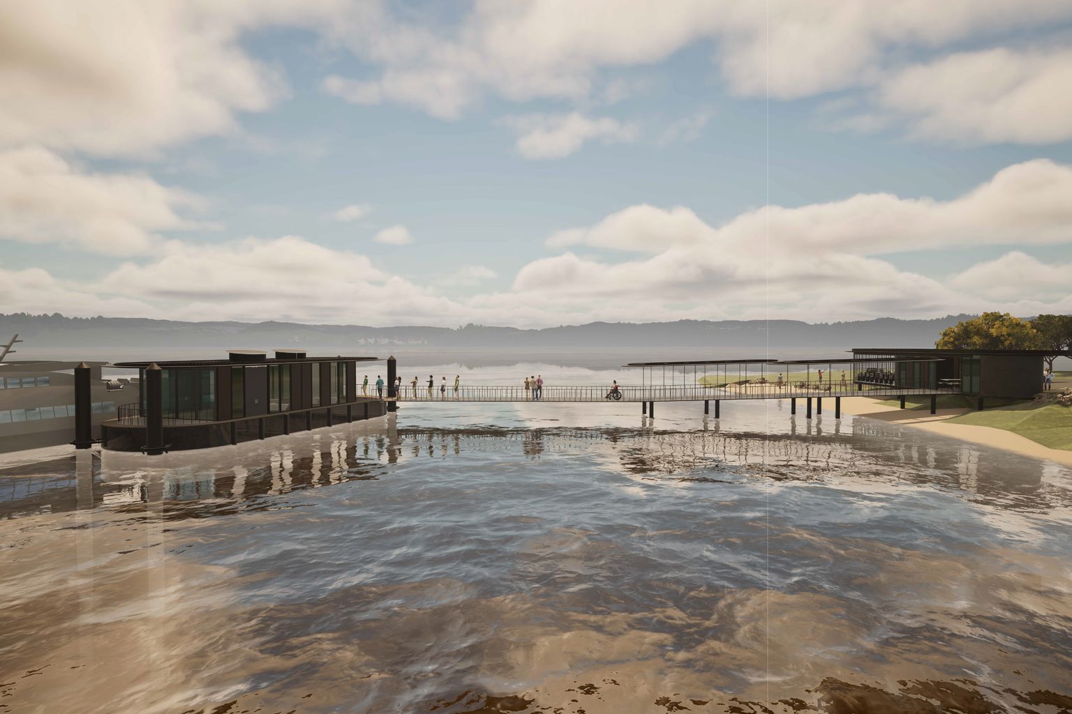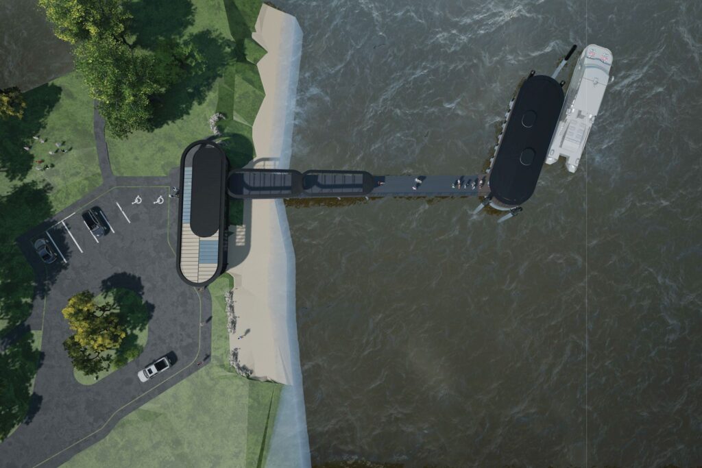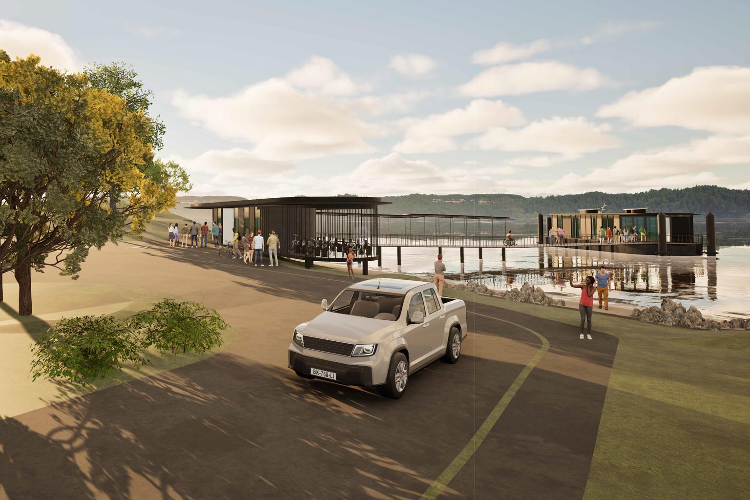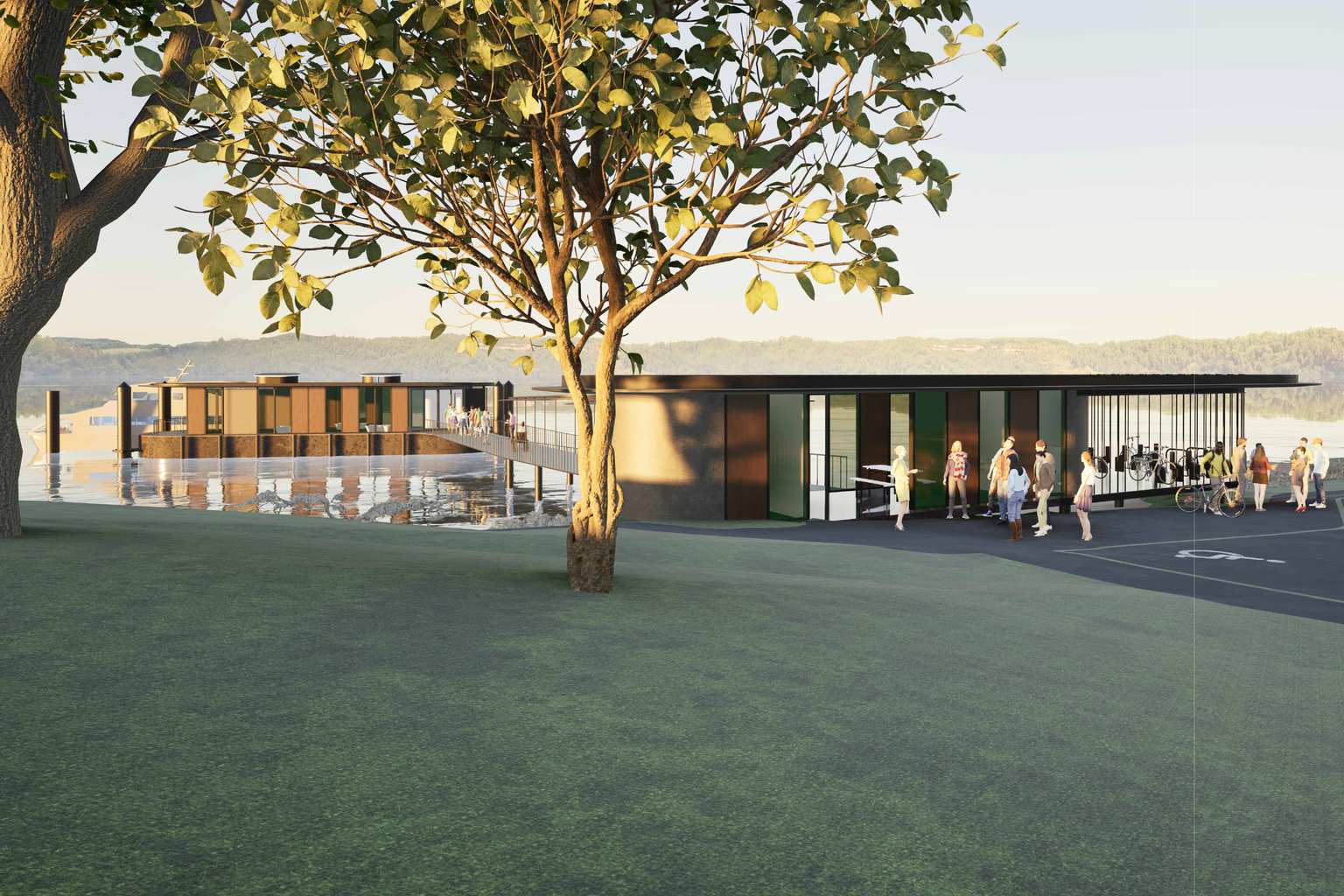 The proposal includes an 81-square-metre waiting building, a covered deck, an 88-square-metre gateway building with bike storage, accessible toilets and a hydraulic gangway.