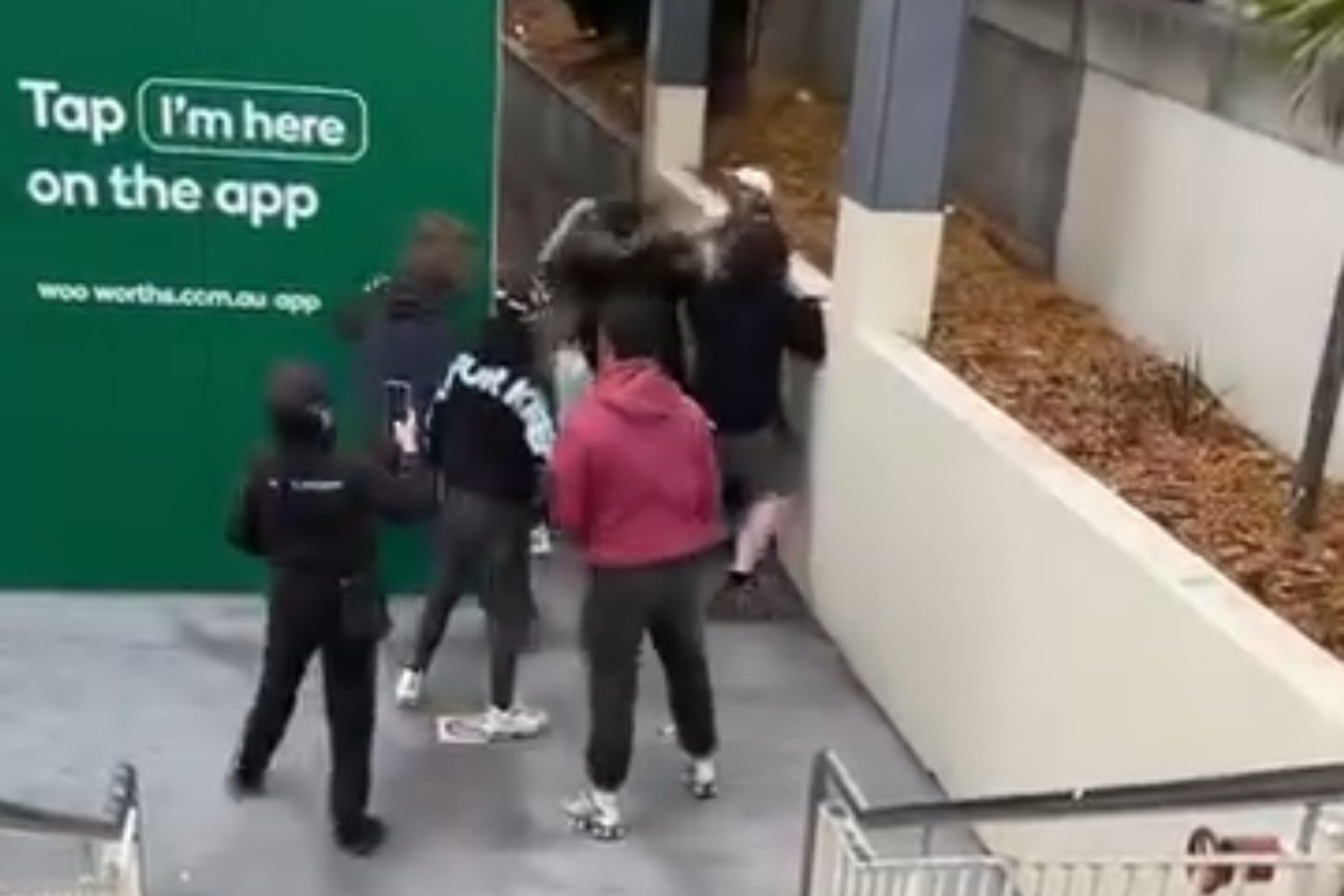 Others in the group watched and filmed the altercation from the steps.
