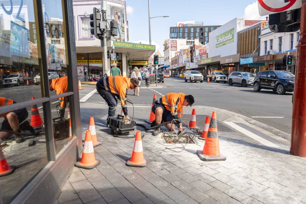 Smoke was seen billowing from an underground utility access point on the footpath.