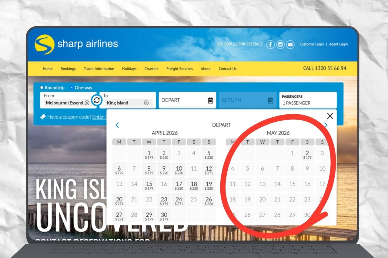 Sharp’s forward bookings now show only Tasmanian connections via Launceston and Wynyard continuing into the 2026-27 summer season.