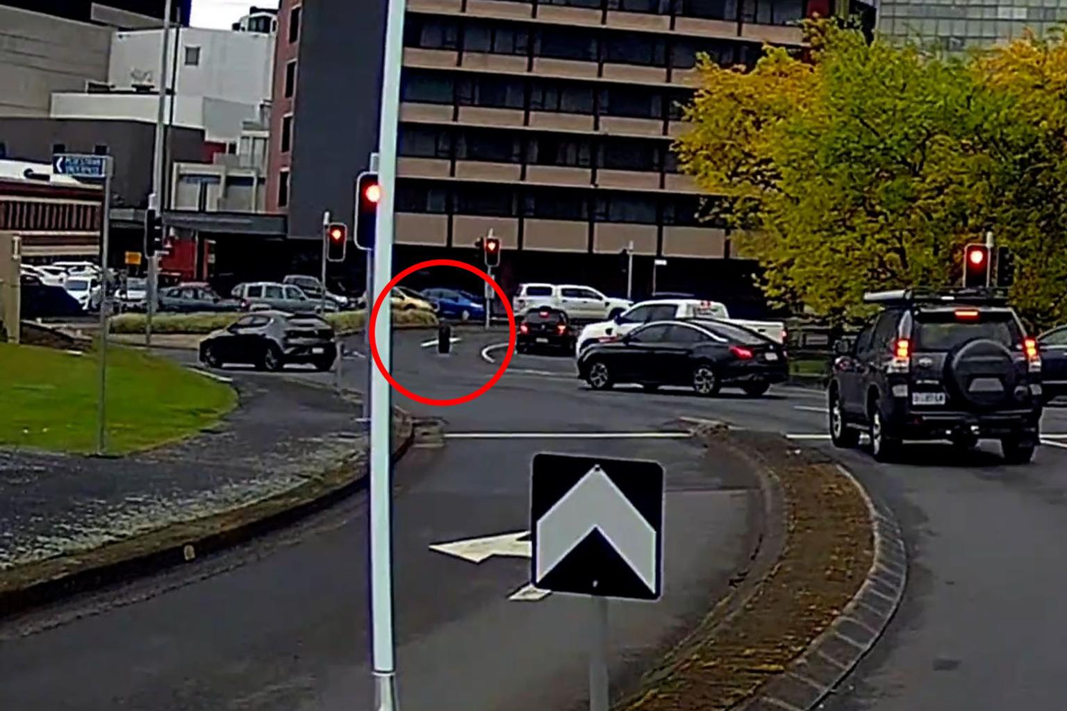 Video footage circulating online shows the tyre speeding down Liverpool Street from the Tasman Highway and through the Railway Roundabout around 8am on Wednesday.