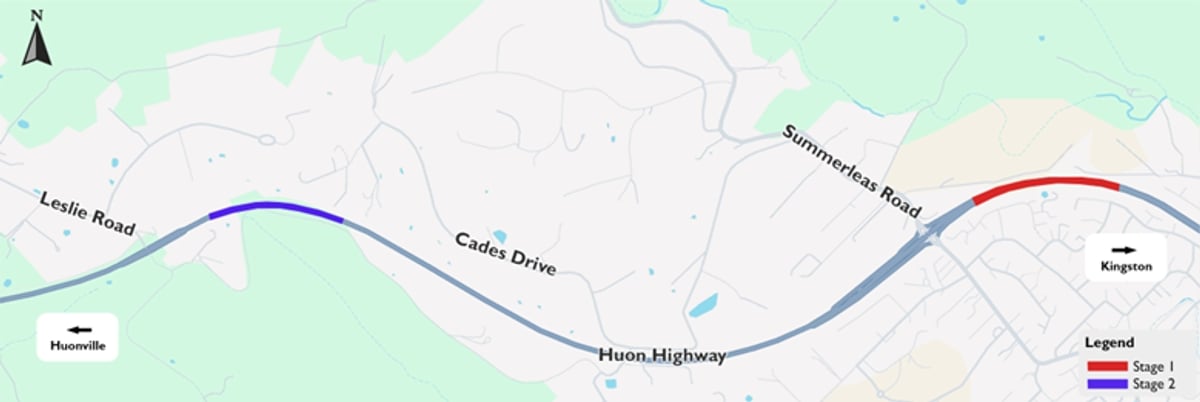 Roadworks on the Huon Highway will cause traffic disruptions for motorists travelling between Kingston and the Huon Valley from early January until late March.