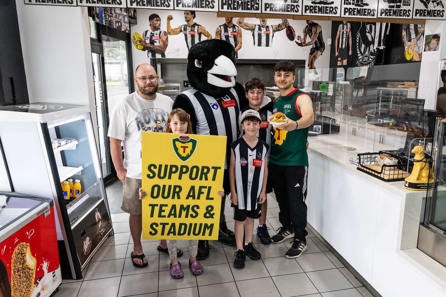 The 30-year-old family business has proudly displayed pro-stadium materials alongside Tasmanian Devils merchandise.