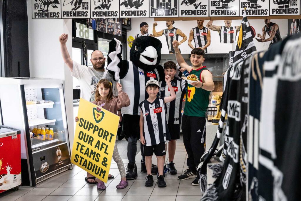 The 30-year-old family business has proudly displayed pro-stadium materials alongside Tasmanian Devils merchandise.