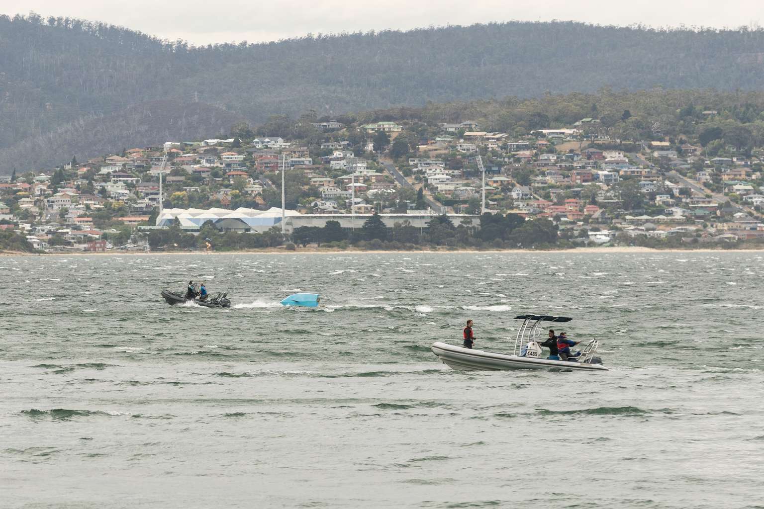 The drama unfolded around 1:20pm when a powerful gust hit 47 vessels competing in an event for the Bellerive Regatta between Sandy Bay and Long Point.