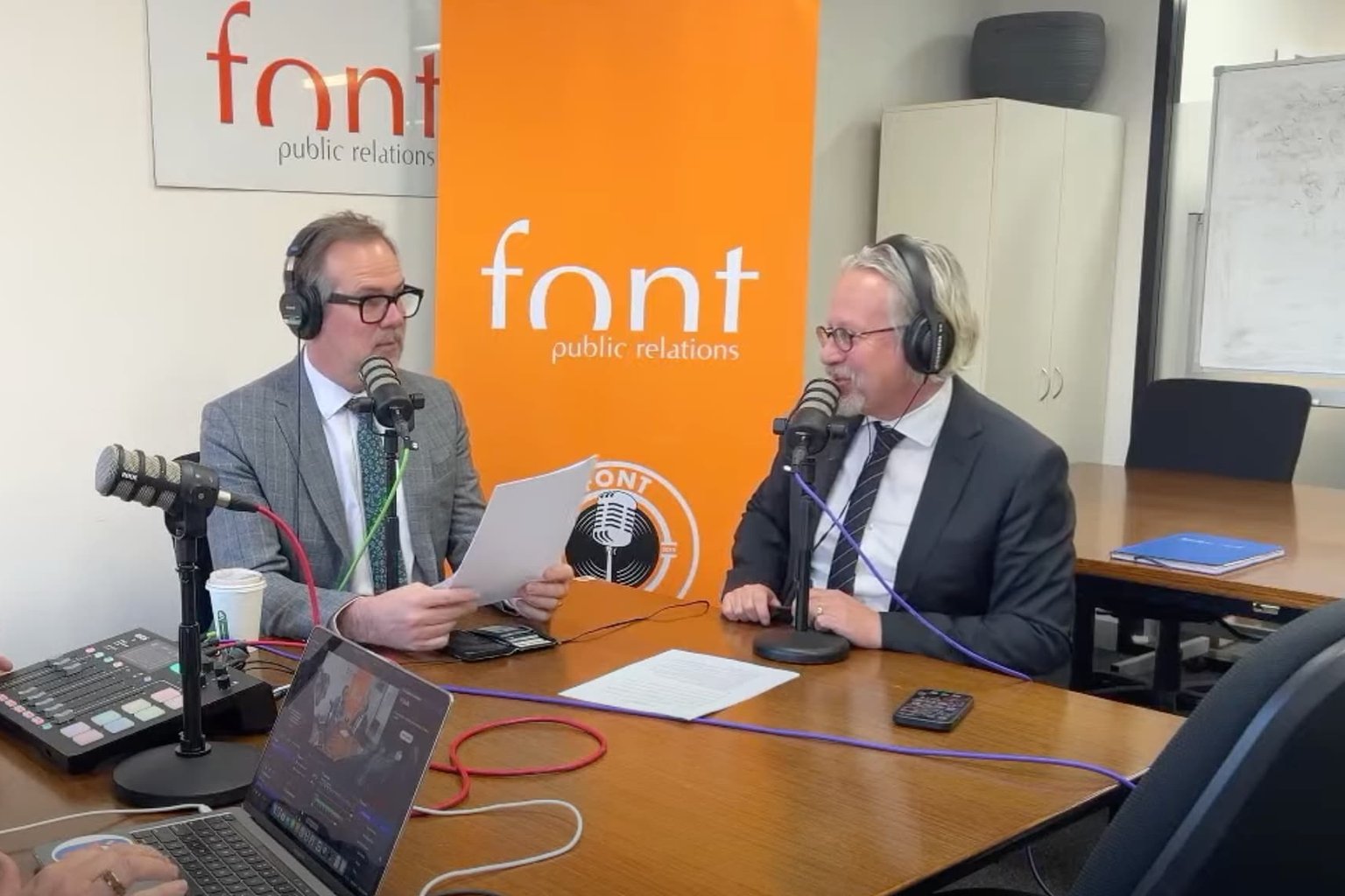 The new podcast is being produced from the former Font PR office on Collins Street in Hobart, which now houses EMRS.