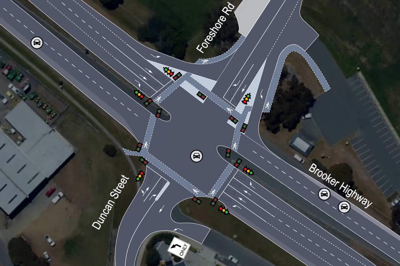 The lights at the Brooker Highway, Foreshore Road and Duncan Street intersection will go live on Tuesday, subject to suitable weather for final line-marking.