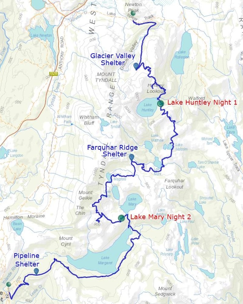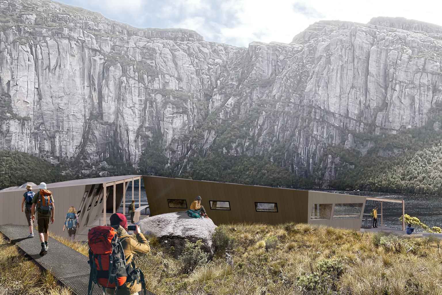 The 31-kilometre track would include accommodation at Lake Huntley and Lake Mary for up to 44 walkers, featuring communal huts, private pods and camping platforms.