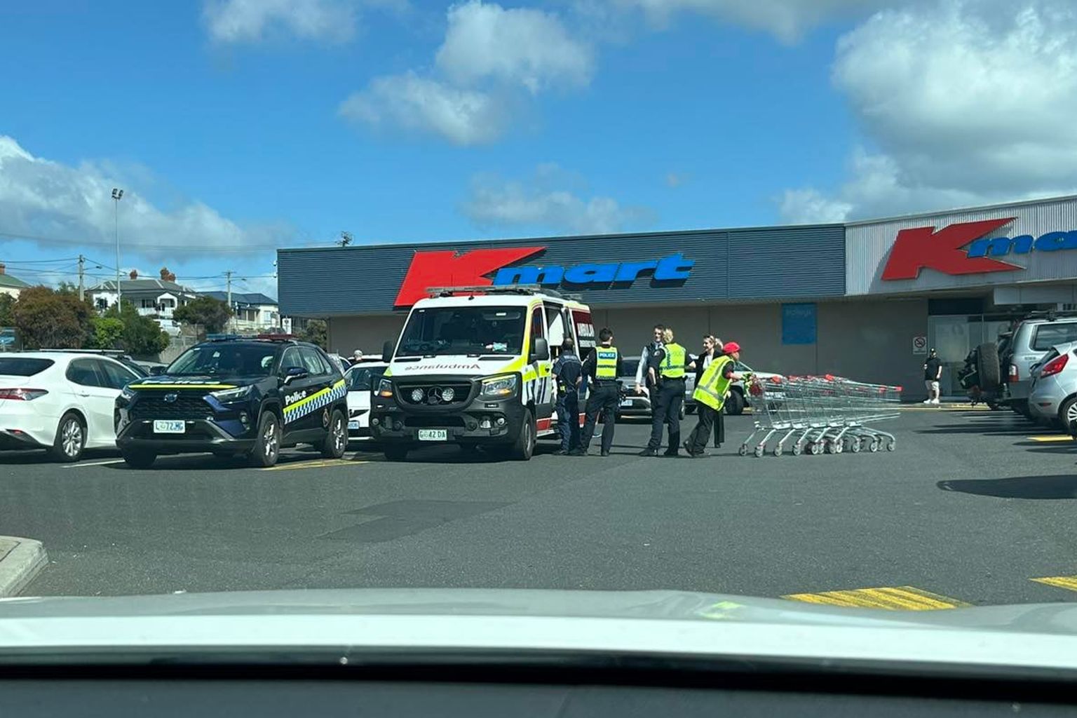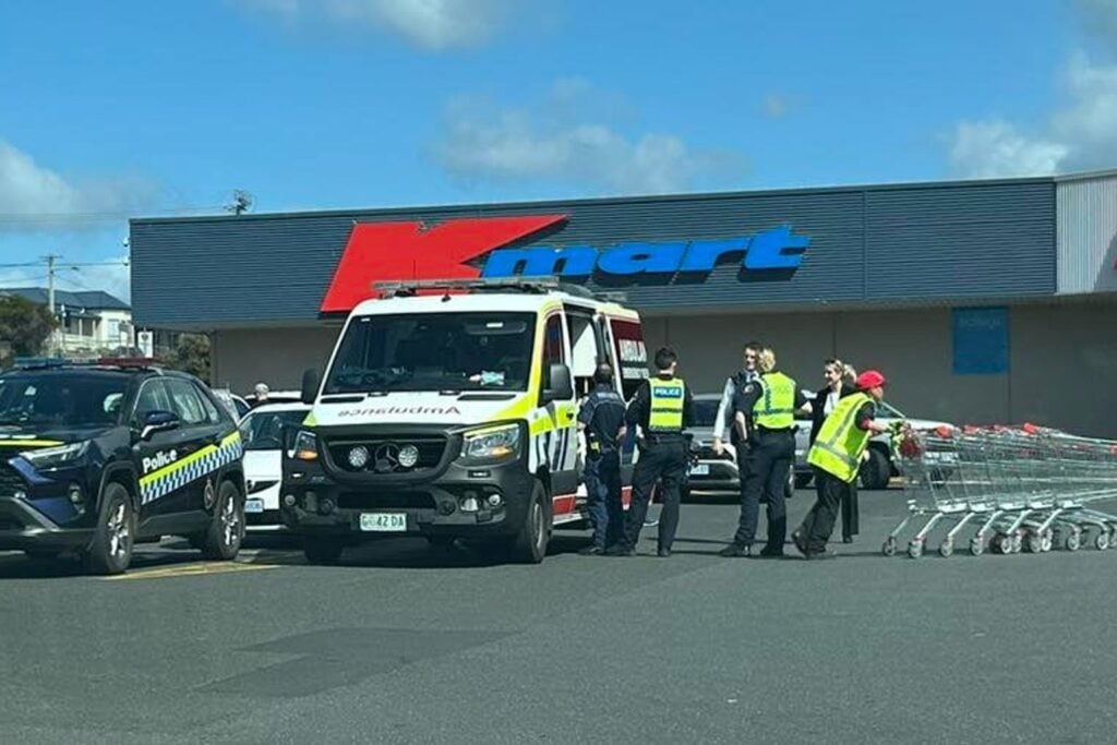 Emergency services were called to the Kmart and Coles complex at the corner of Best Street and Gunn Street about 11am on Monday.