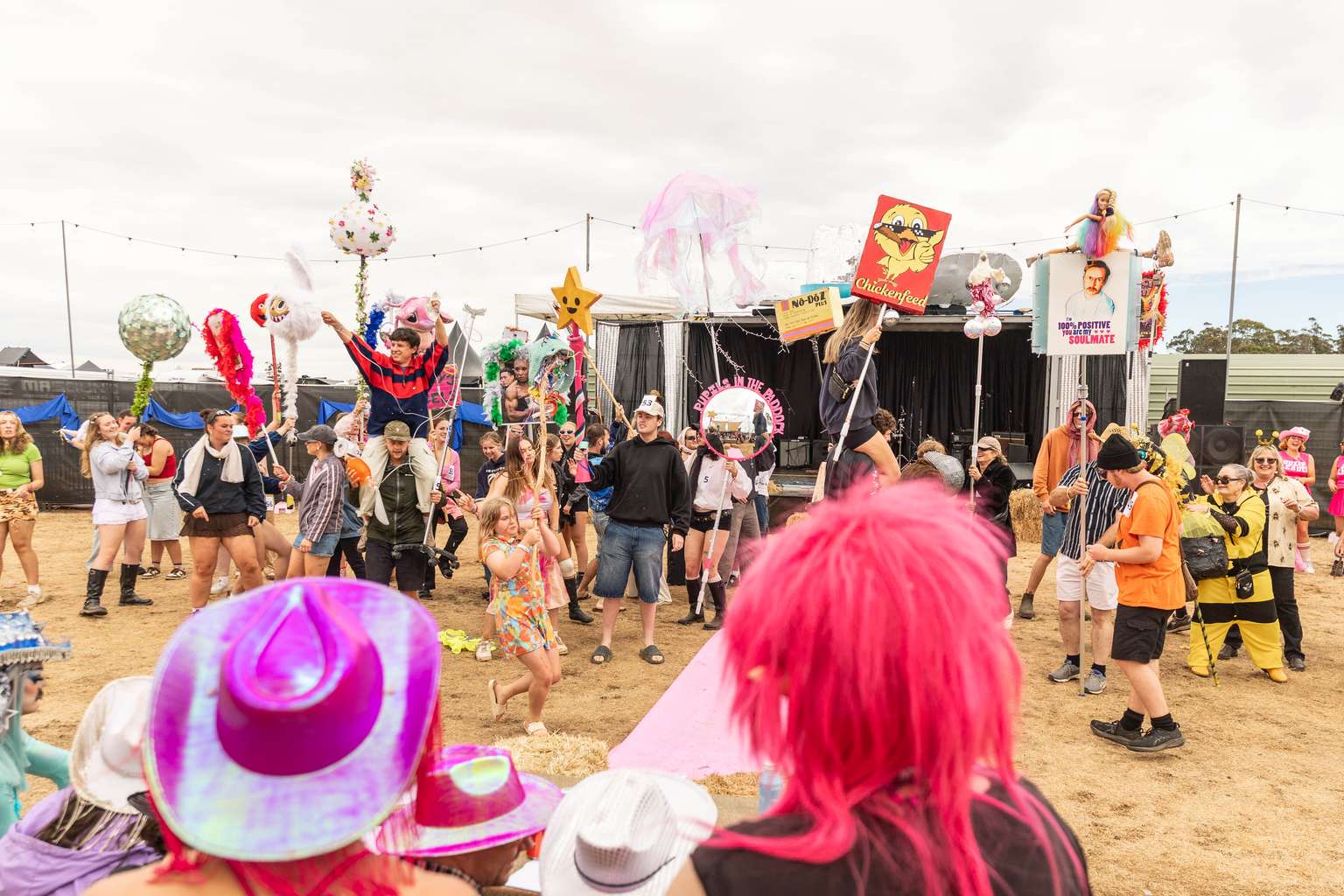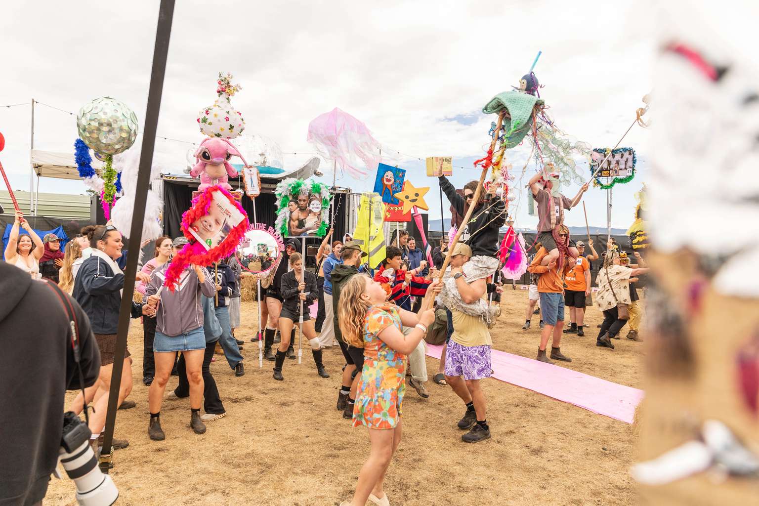 Dozens of creative Tasmanians have transformed everyday items into towering festival totems at Party In The Paddock’s third annual doof stick pageant.