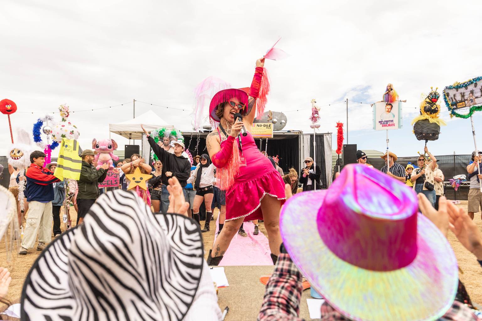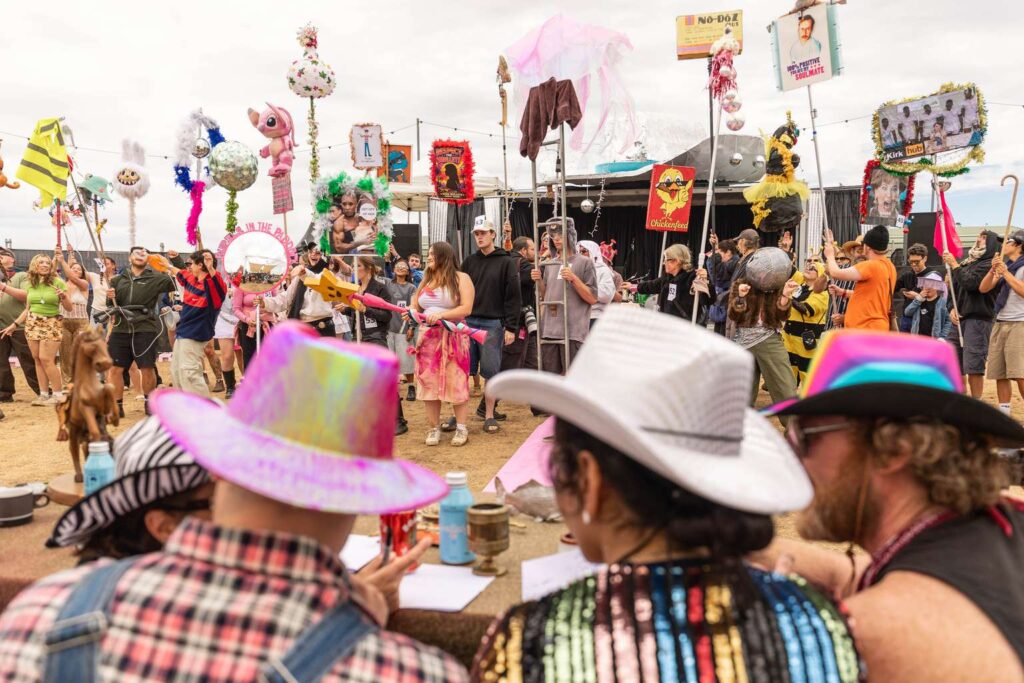 The competition, held in the festival’s bullpen, celebrates the DIY spirit of festival-goers who craft elaborate poles to show off in the mosh pit and help mates locate each other in the crowd.