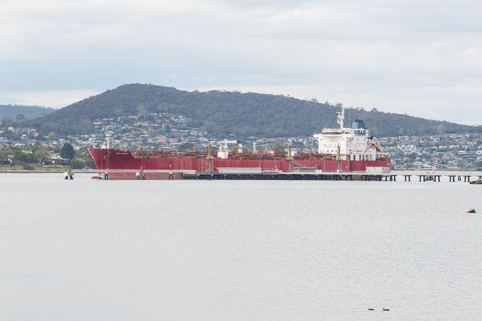 The Sea Quest docked at Selfs Point this morning for a routine delivery to Tasmania’s fuel supply network.