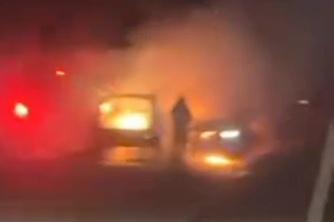 Images from the scene showed both vehicles engulfed in flames on the roadway.