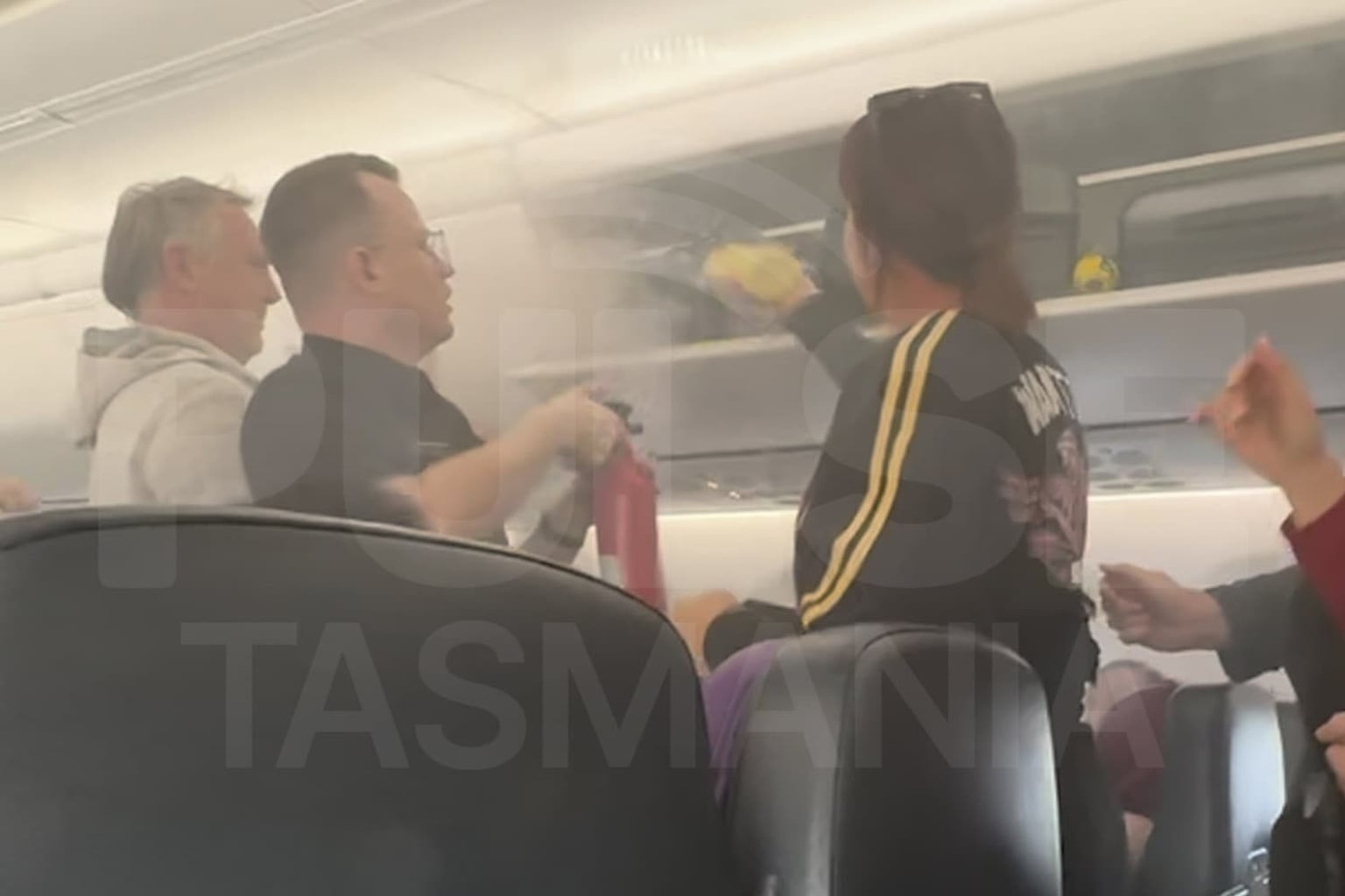 A routine Virgin Australia flight to Hobart turned dangerous when a passenger’s power bank exploded in an overhead locker, filling the cabin with smoke and flames just minutes before landing.