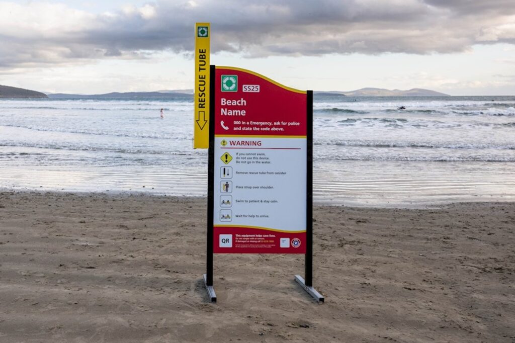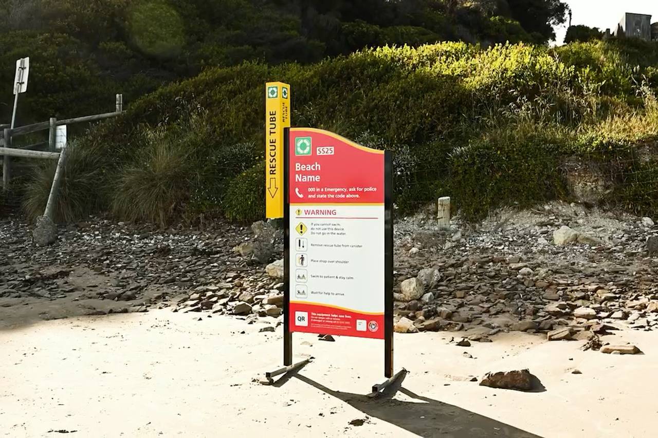Each station will feature a bright yellow canister containing a rescue tube with a lanyard, step-by-step signage and a QR code linking to the BeachSafe app.
