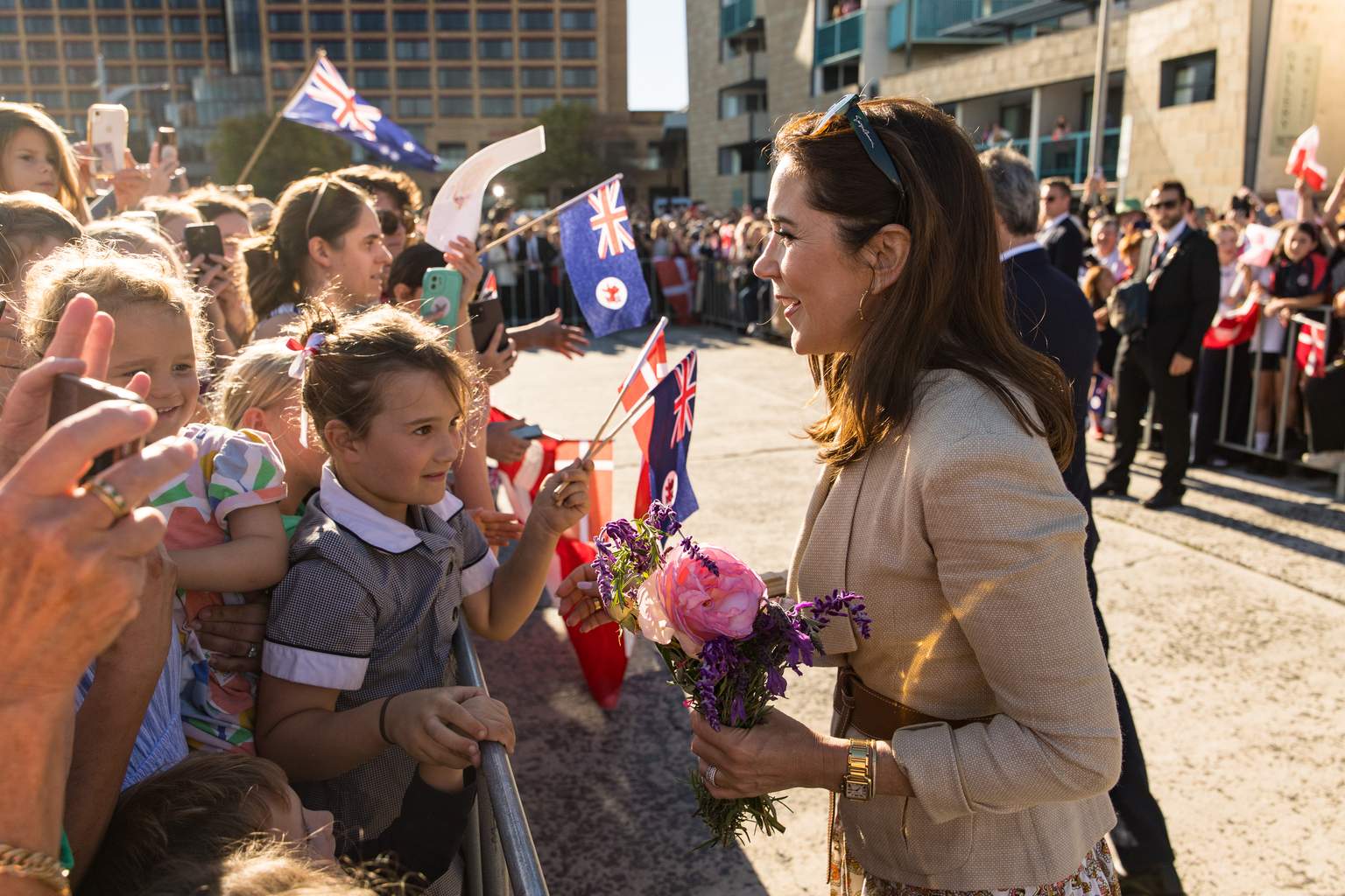 The visit concluded with a public walkabout along Hunter Street, where crowds lined both sides of the waterfront precinct to greet the couple.