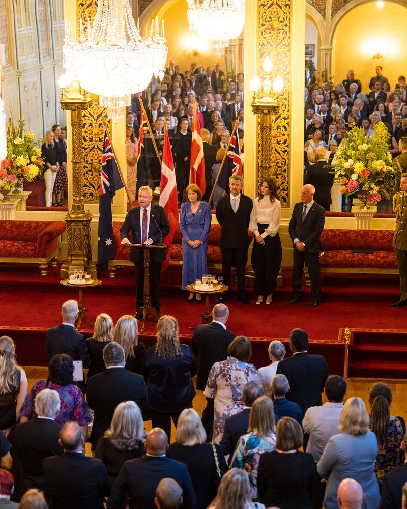 “Last night I ended a speech in Melbourne saying how privileged I am that my roots are grounded both in Australia and Denmark, but they do go a little bit deeper – in Tasmania,” Queen Mary told guests at a state reception at Government House tonight.
