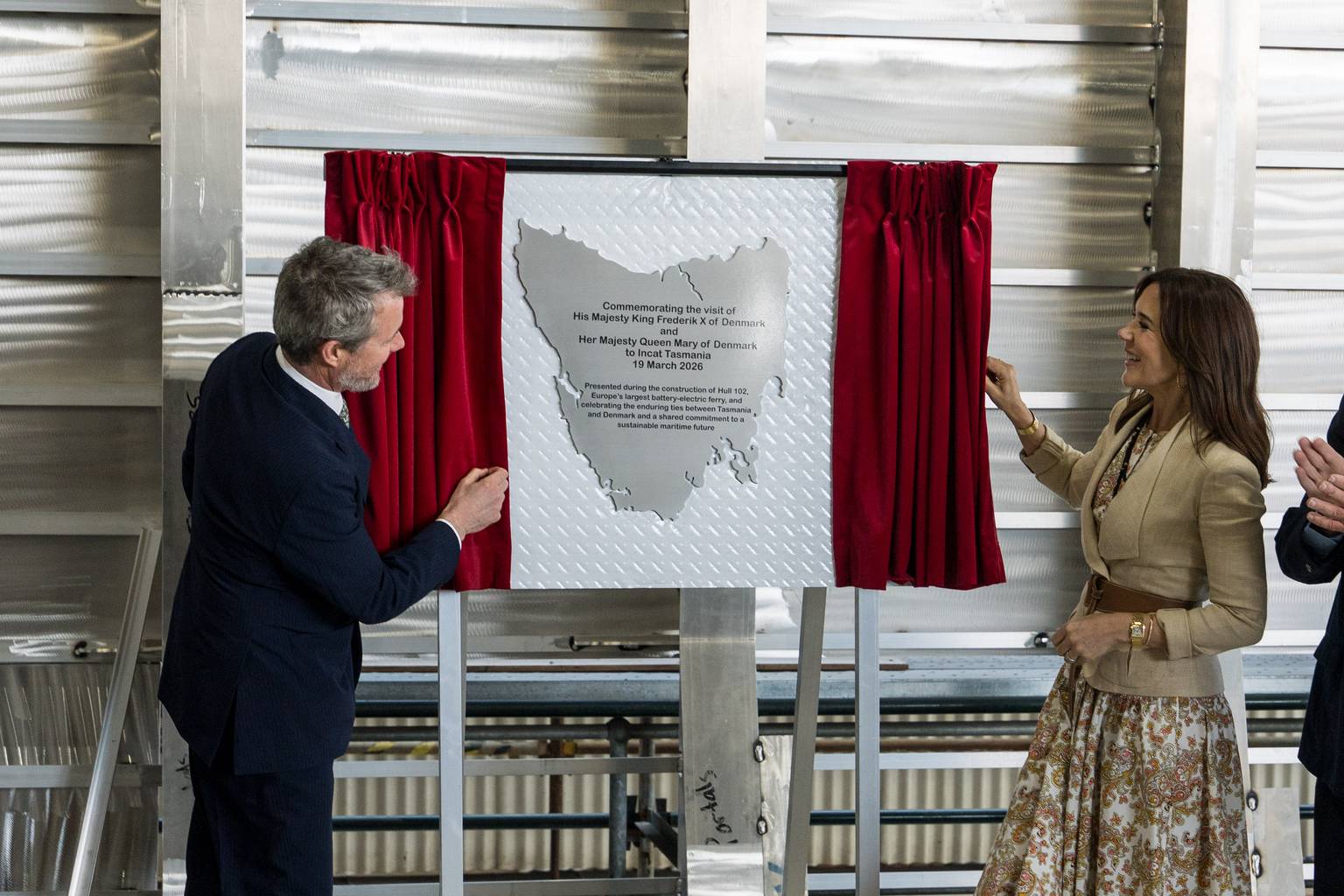 The Hobart-born royal and King Frederik spent their final day touring Tasmania’s south, from an marine research with IMAS near Taroona to cutting-edge battery-electric shipbuilding at Incat’s Derwent Park facility.
