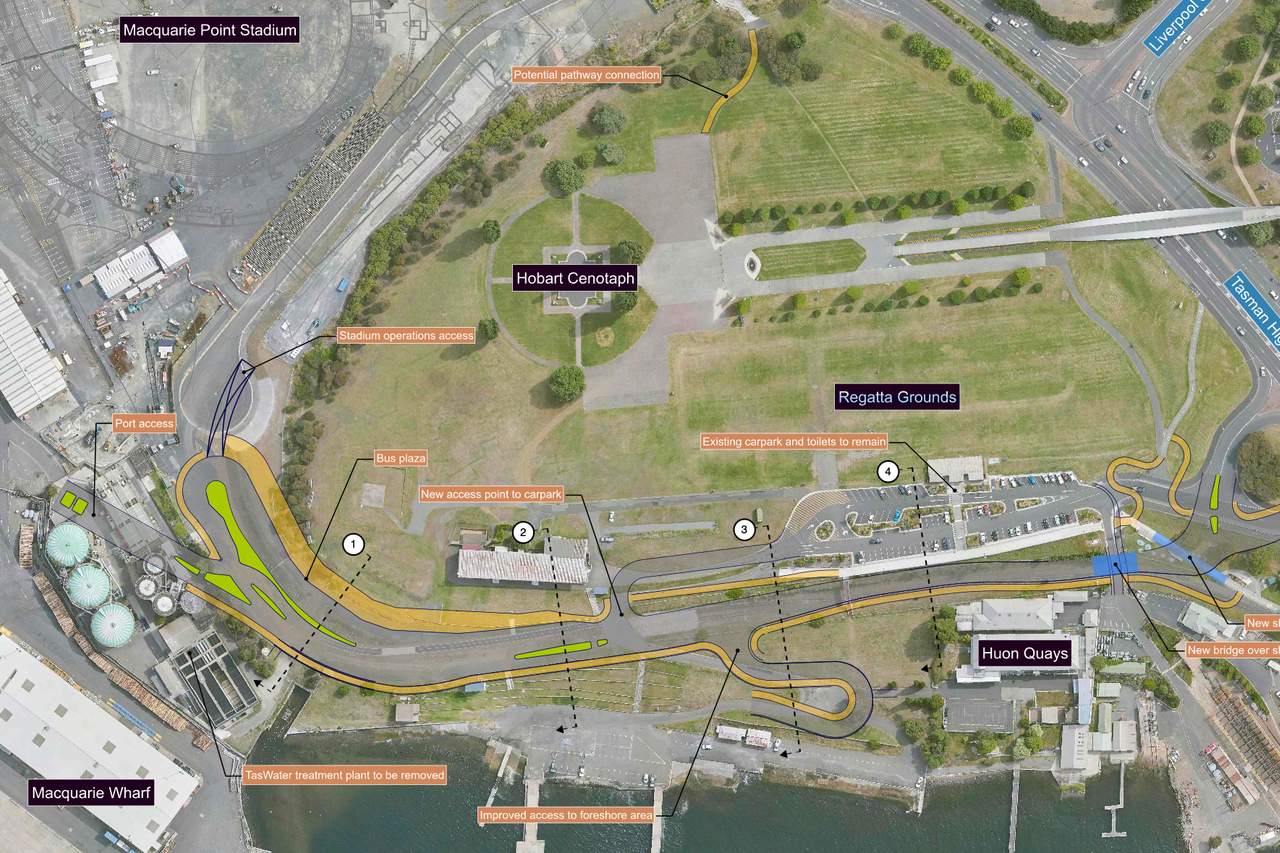 The state government today opened public consultation on the northern access road, which would run from the Tasman Highway around the Cenotaph to the planned multi-purpose stadium and port.
