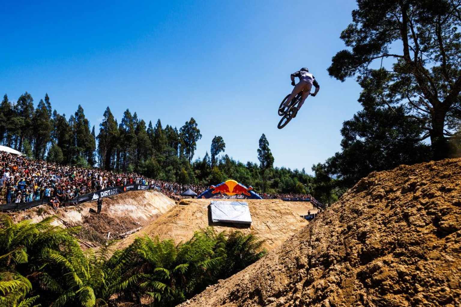 Hardline courses rank among the most dangerous in professional mountain biking, featuring massive jumps, steep rock faces and high-speed sections through dense bushland.