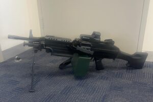 A raid uncovered several firearms alongside bags of methylamphetamine