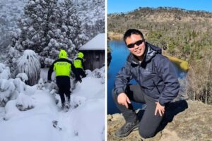 Crews battled waist-deep snow and gale-force winds to locate the missing hiker