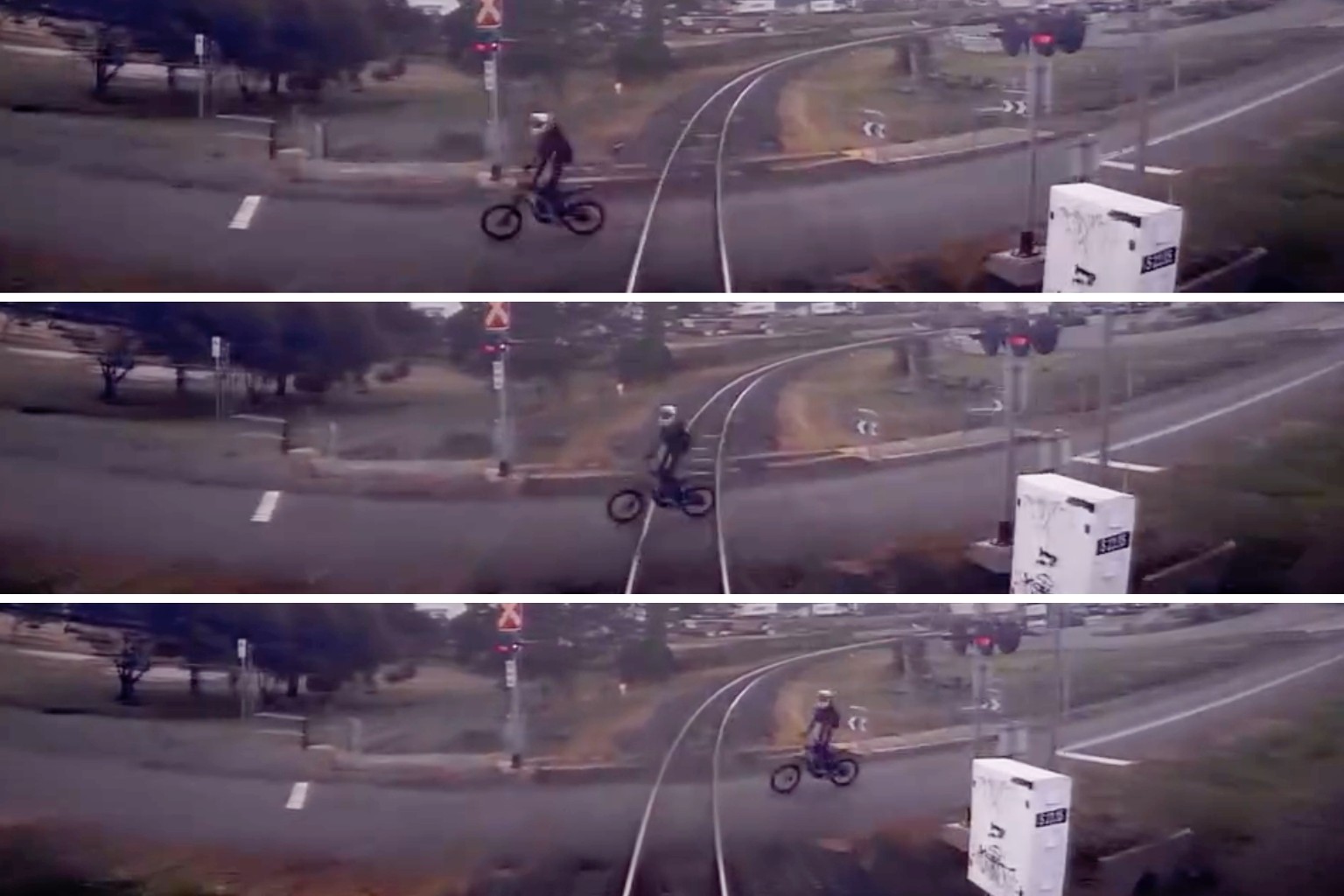 Rider filmed darting across tracks as train nears