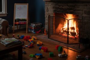 Court told mum held son over burning fireplace
