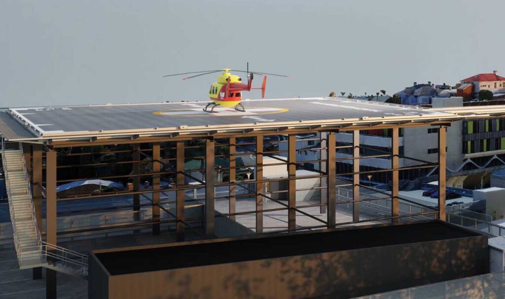 “The modules will be lifted into position on top of the Cleveland St car park by the on-site tower crane and installed on the helipad substructure.”