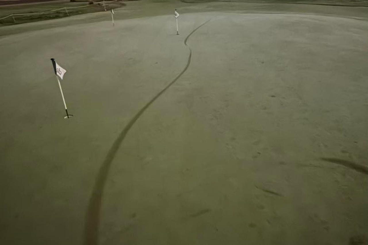 “It’s gouged out. You can see where it’s probably skid marks and gouged markings through different areas, through the tee boxes and through some of the greens.”