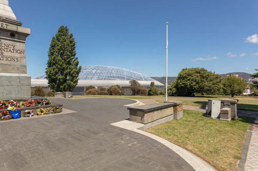 “It was purposely sited to command key sightlines across the city and down the Derwent River where the troops departed for Gallipoli and many of these would be destroyed and the Cenotaph dwarfed by the roofed stadium design.”