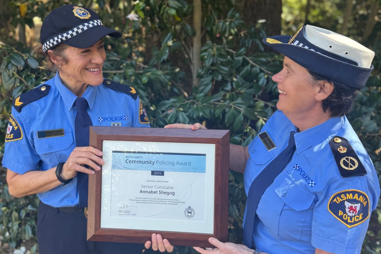 Senior Constable Annabel Shegog has been named the inaugural recipient of the Keith Smith Community Policing Award, celebrating her 38 years of service with Tasmania Police.