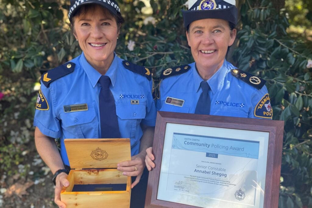 Senior Constable Annabel Shegog has been named the inaugural recipient of the Keith Smith Community Policing Award, celebrating her 38 years of service with Tasmania Police.