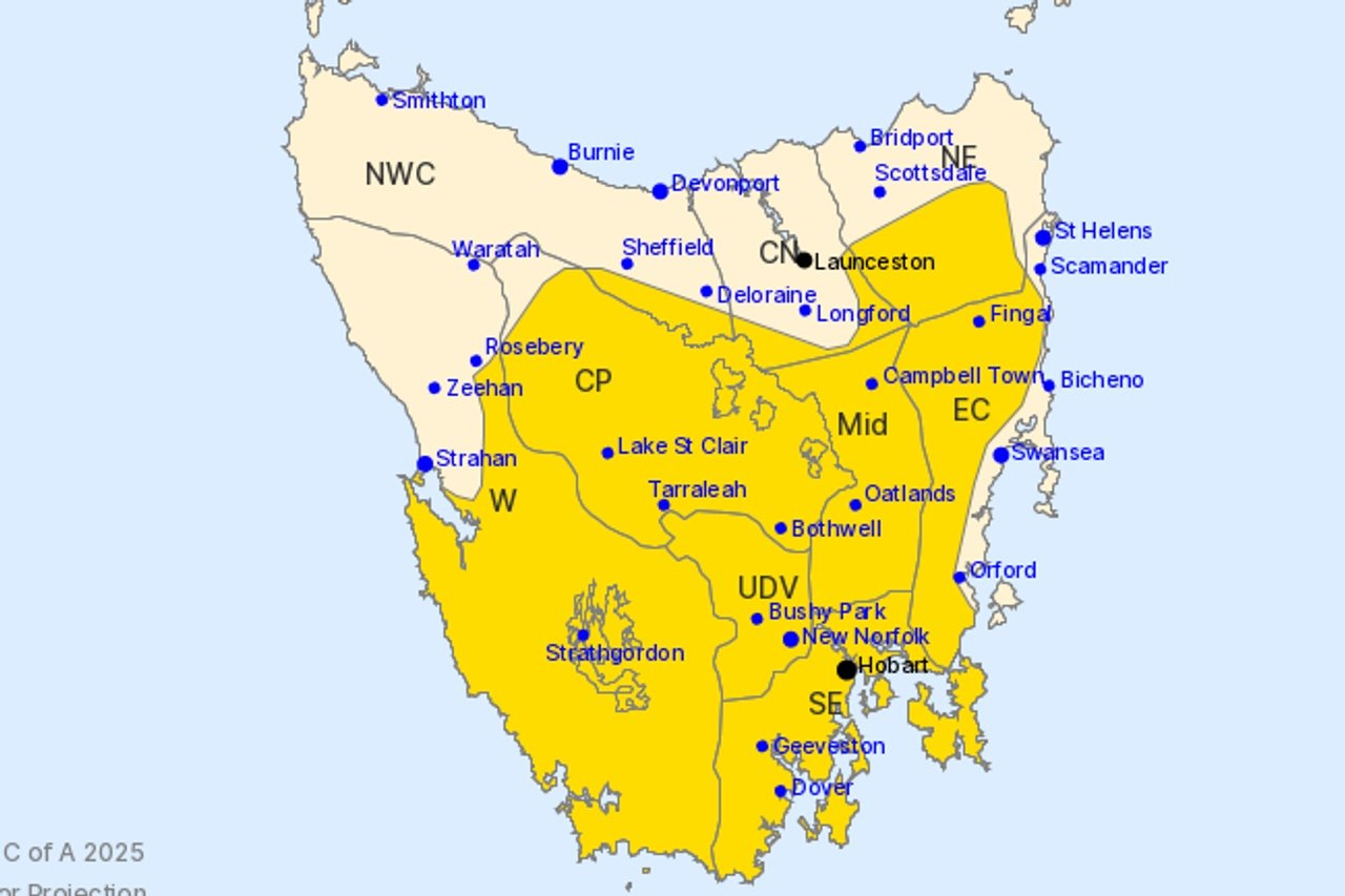 The rest of the state, including Hobart, can expect winds averaging 55 to 65km/h with gusts up to 100km/h during the afternoon.
