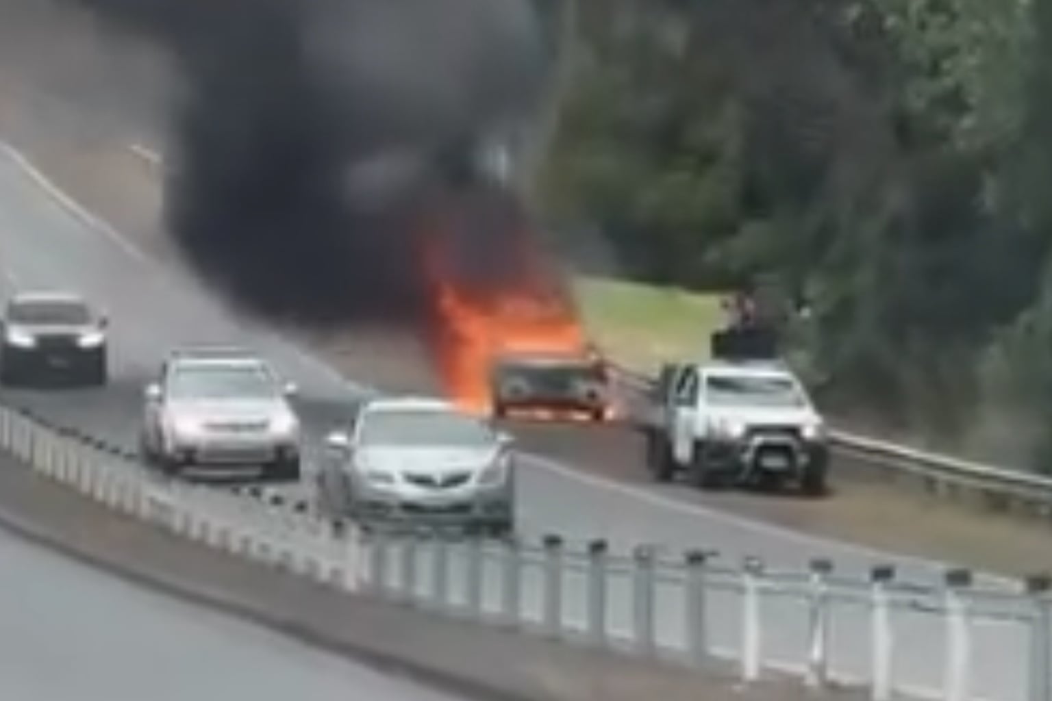 The blaze erupted on the Kingston-bound Southern Outlet just 200 metres from the Davey Street intersection around 4:50pm.