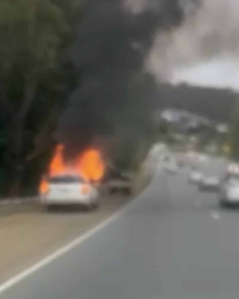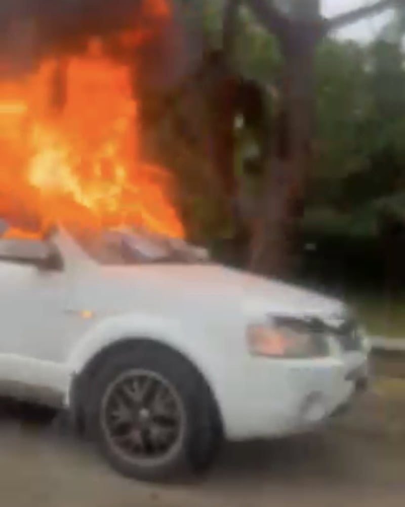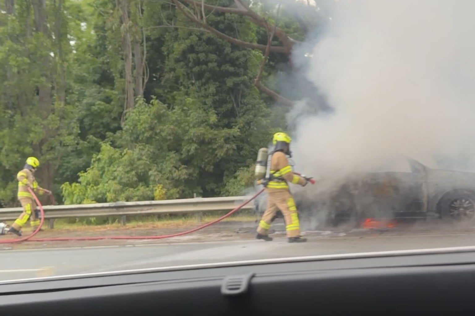 The vehicle was described as being “fully engulfed” in flames, with thick smoke visible from across the city.