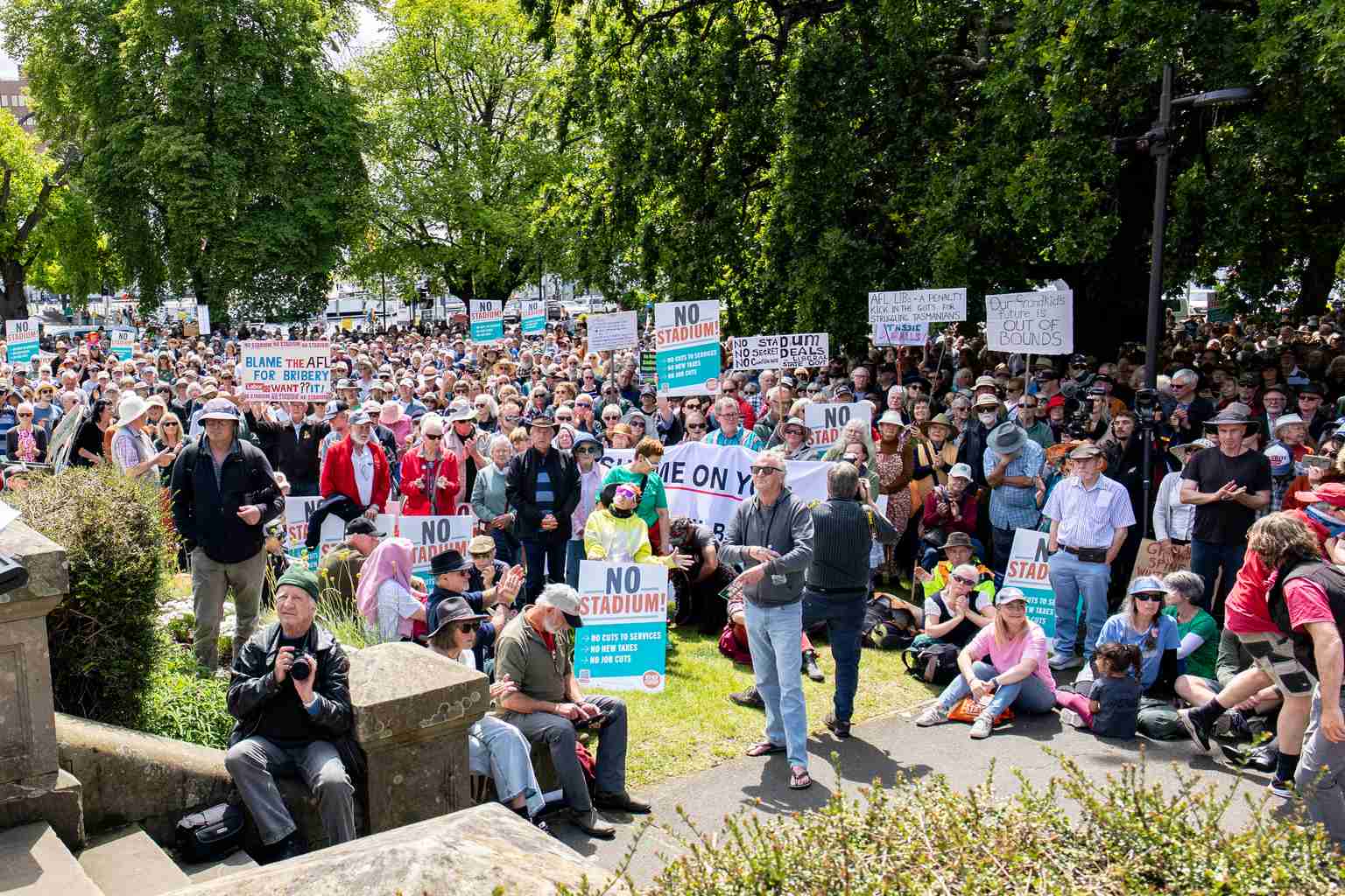 The “Yes AFL Teams Yes Stadium” rally is aiming to demonstrate public backing for the proposed multipurpose stadium, which has support from both the Liberals and Labor, ahead of a crucial upper house vote next week.