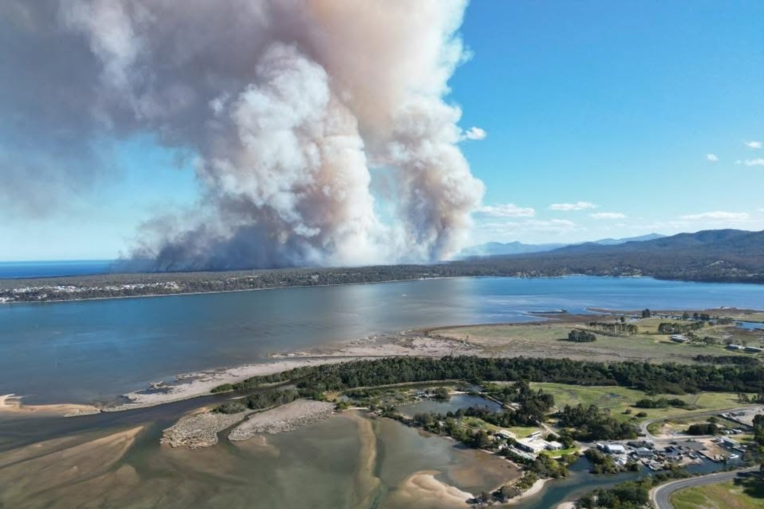 The bushfire between Stieglitz and Dianas Basin has scorched more than 1,000 hectares, destroyed two houses and forced widespread evacuations, cutting off access to the original venue.