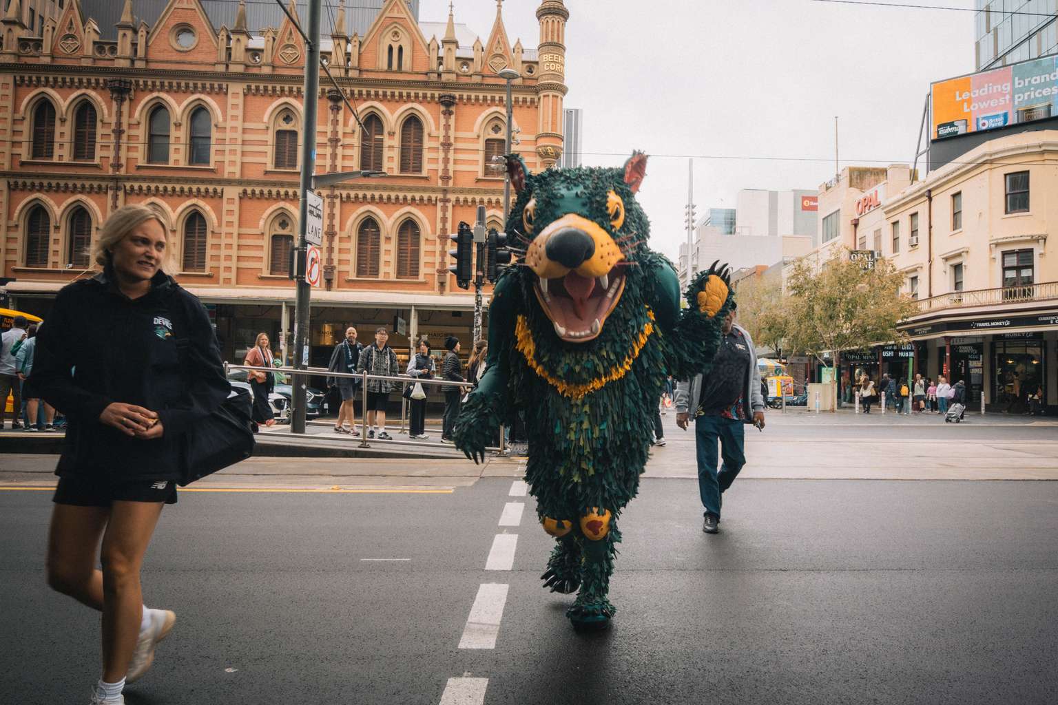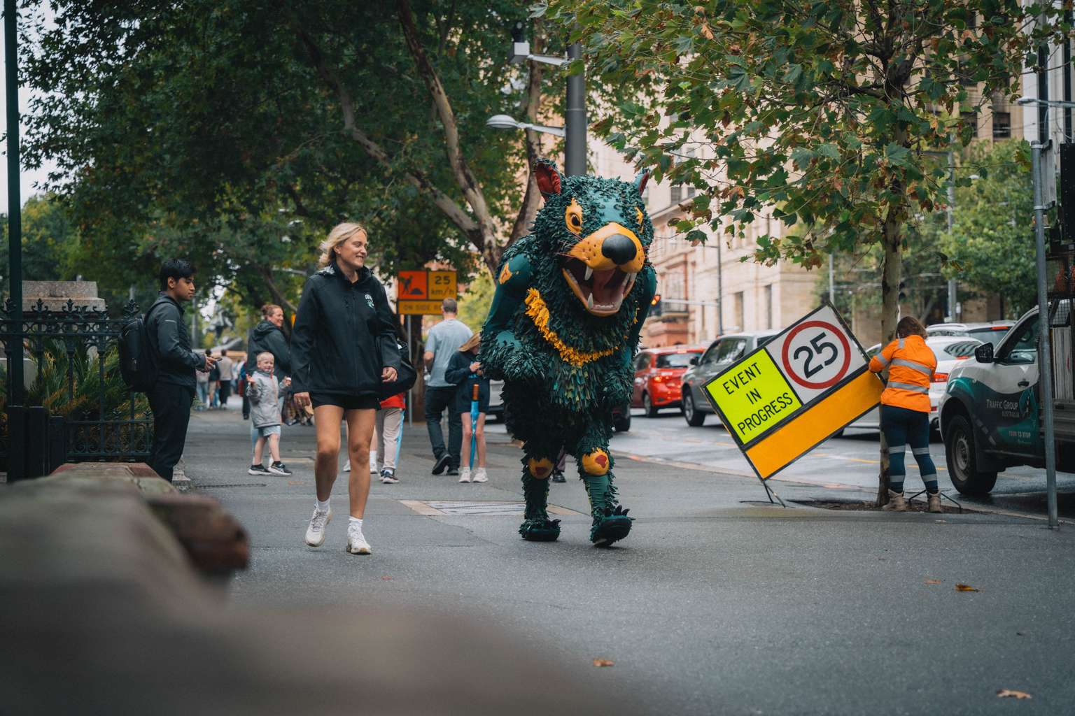 The Devils mascot has been busy engaging with fans across the city, appearing in the Rundle Mall and visiting SEN’s radio studio.