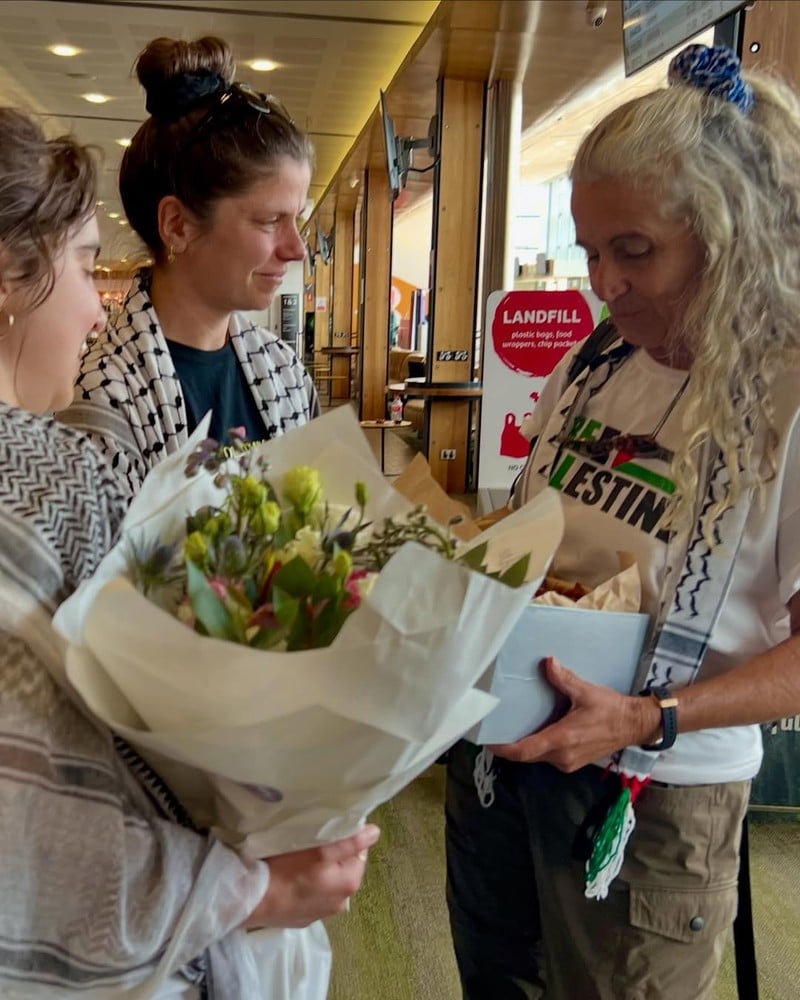 A Tasmanian humanitarian activist has returned home following her detention by Israeli forces after attempting to bring aid to Gaza through a naval blockade.