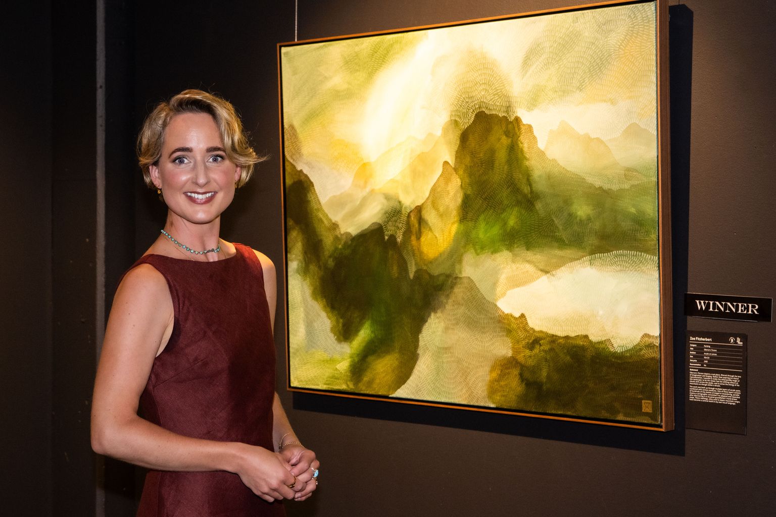 Zoe Fitzherbert claimed the Painting Prize and $20,000 for her work “Oberon’s Throne”, while Harry Blizzard secured the Mixed Media Prize and $20,000 for “Thirsty Work” at a gala event in Hobart on Wednesday night.