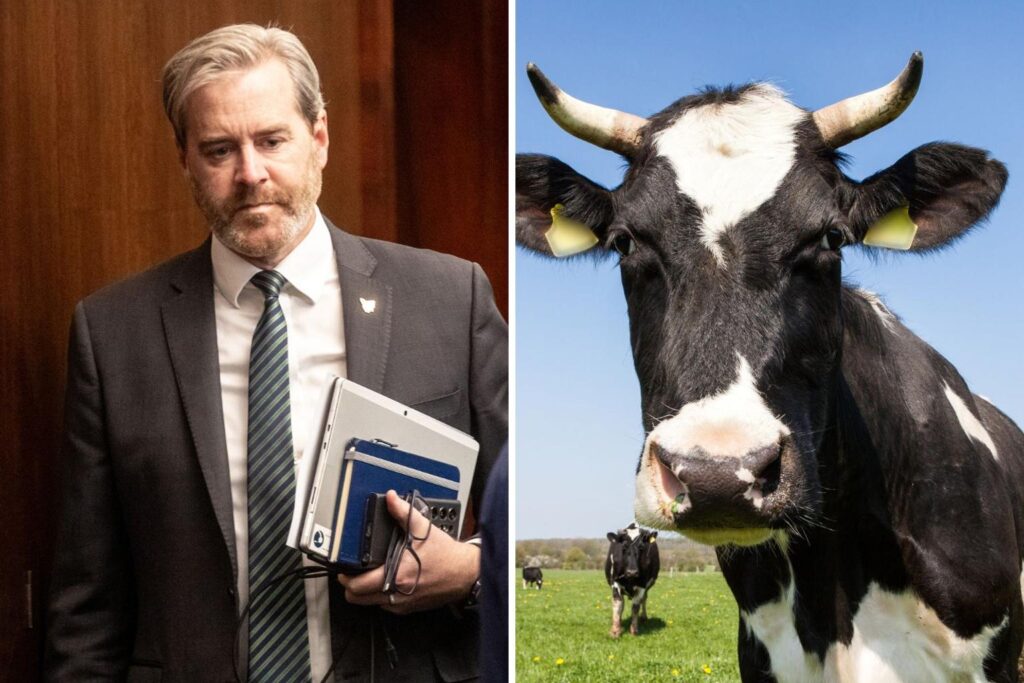 Tasmanian MP Michael Ferguson has walked away from a serious crash after his car hit a cow on the Midland Highway overnight.