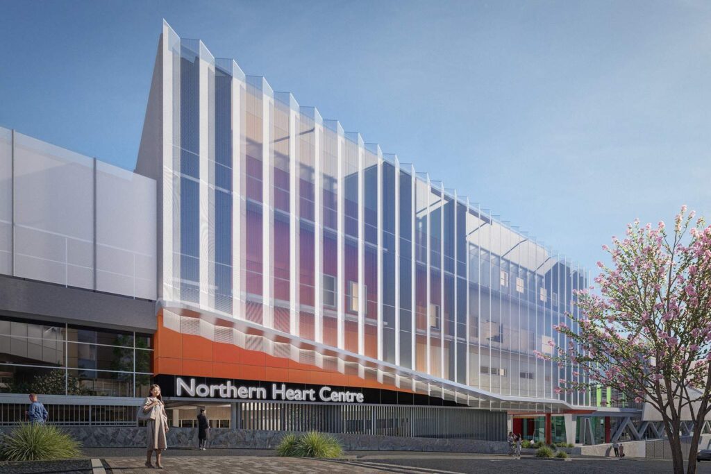 The centre will include 16 cardiac ward beds and seven coronary care unit beds, co-located with the hospital’s intensive care unit, as well as two catheterisation laboratories with recovery and holding bays.