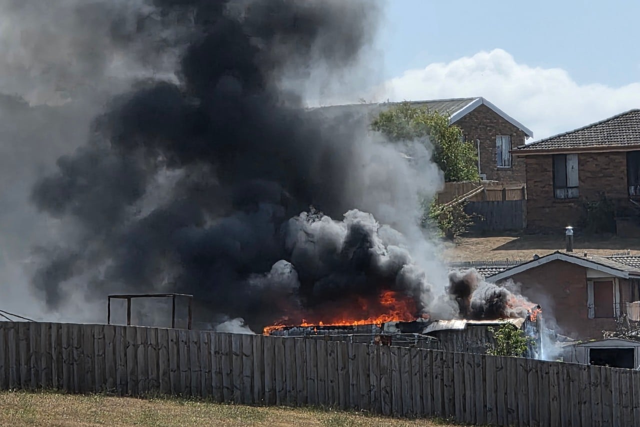 A shed fire at the rear of a residential property in Burnie is sending thick black smoke over the south of the city this evening.