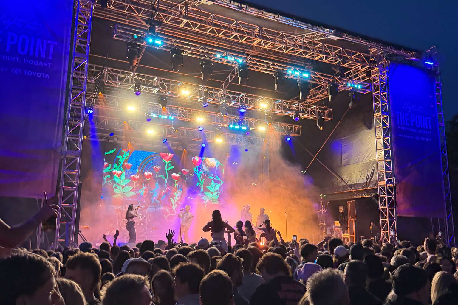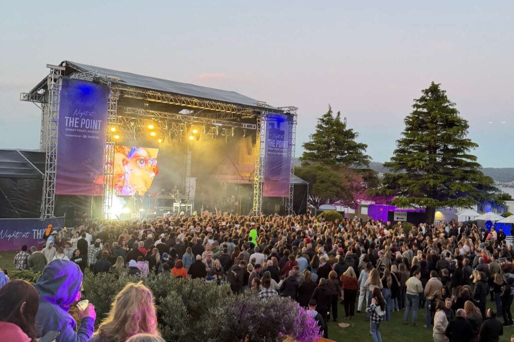 Music lovers from across Tasmania have braved wet weather to attend Hobart’s inaugural Night At The Point concert series on the Wrest Point lawns in Sandy Bay.