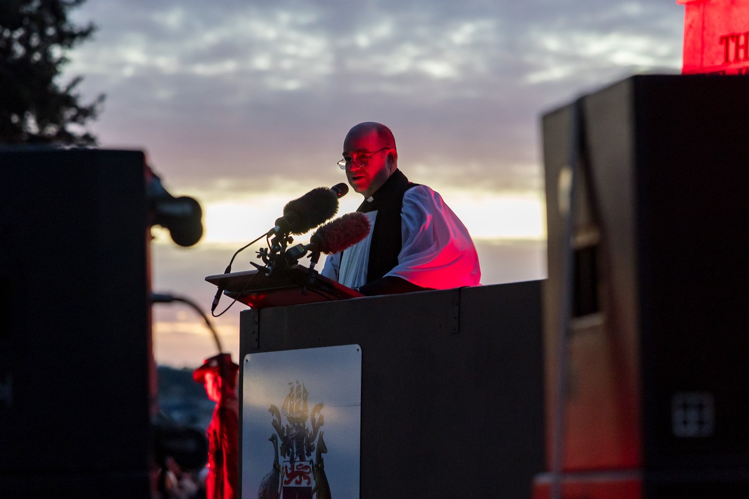 Humphrey welcomed the crowd in the still of dawn and said the service was one of pride and gratitude.