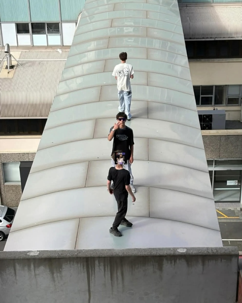 Tasmania Police have issued a stern warning after three individuals were spotted allegedly scaling an elevated walkway in the Hobart CBD.