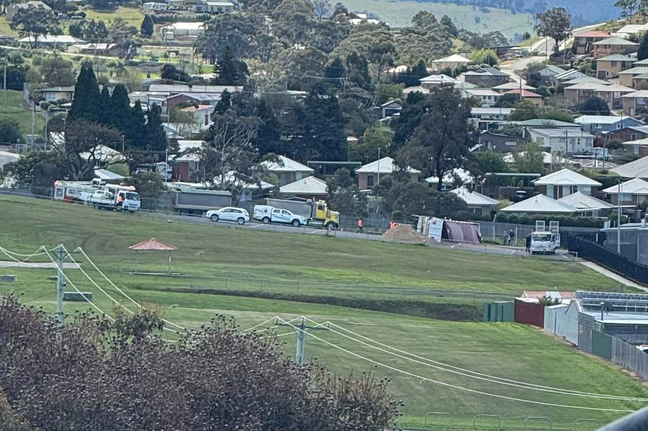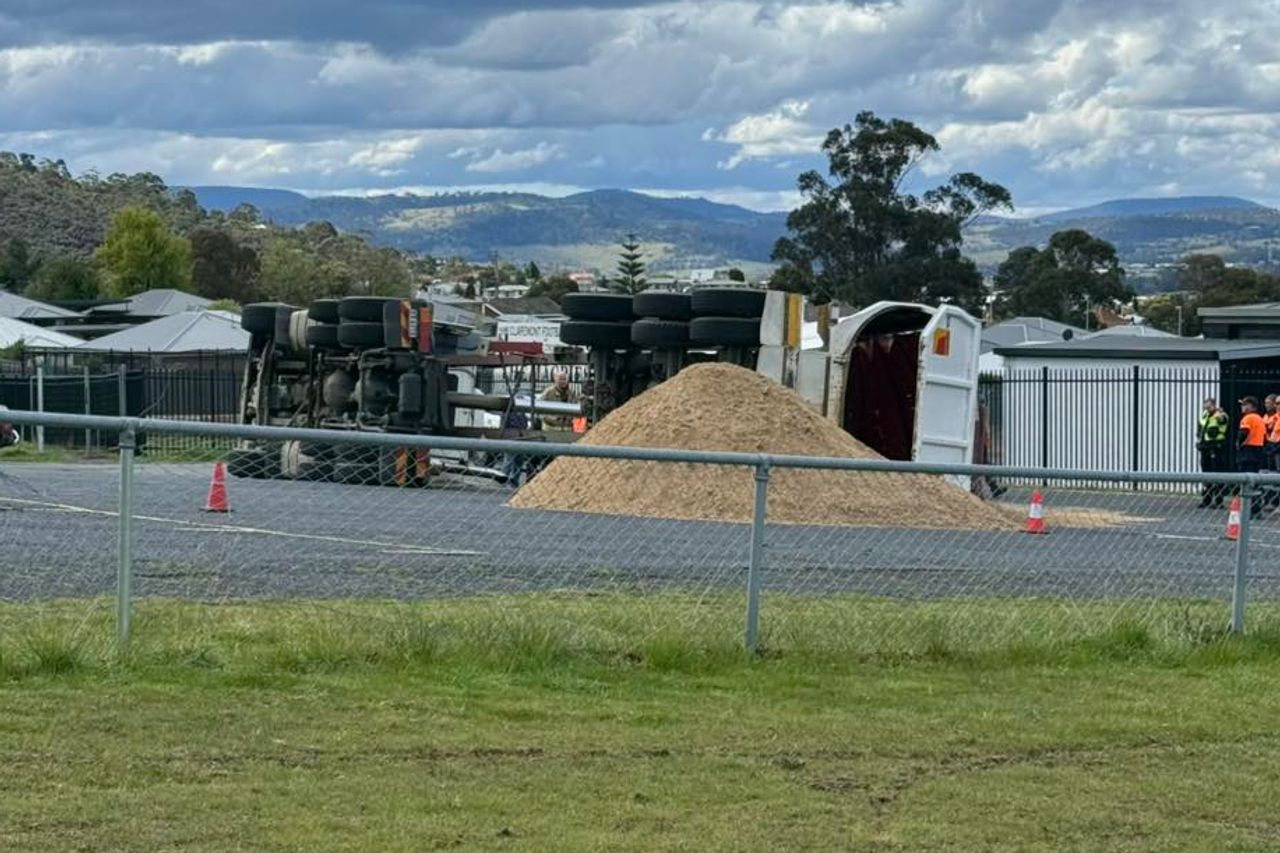 A truck has rolled onto its side in the car park at Claremont Oval this afternoon.