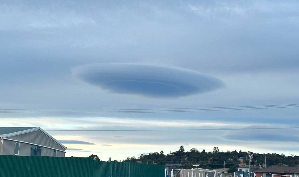 A ‘ufo-shaped’ cloud that appeared over Hobart this morning has nothing to with aliens, the BOM have confirmed.