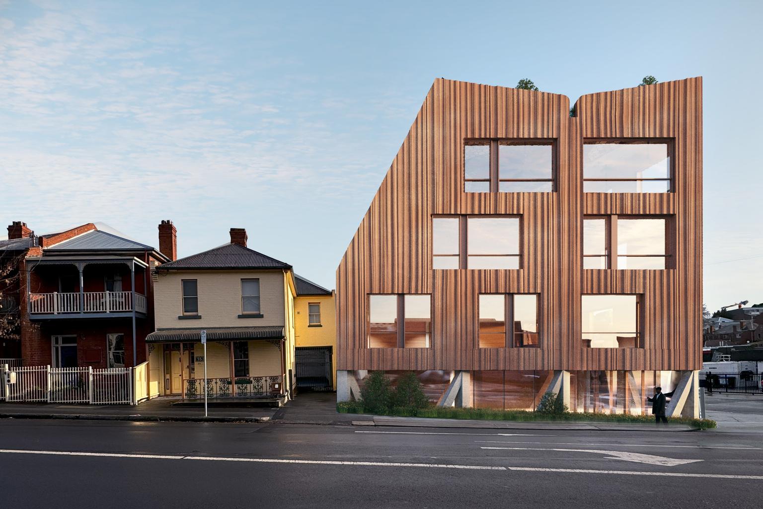 A five-storey office building designed to celebrate Tasmania’s union heritage has been proposed for a corner site in Hobart’s CBD, with a distinctive facade inspired by workers marching with banners.